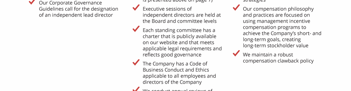- Corporate Governance Guidelines and Code of Conduct and Ethics