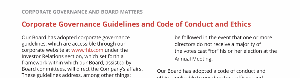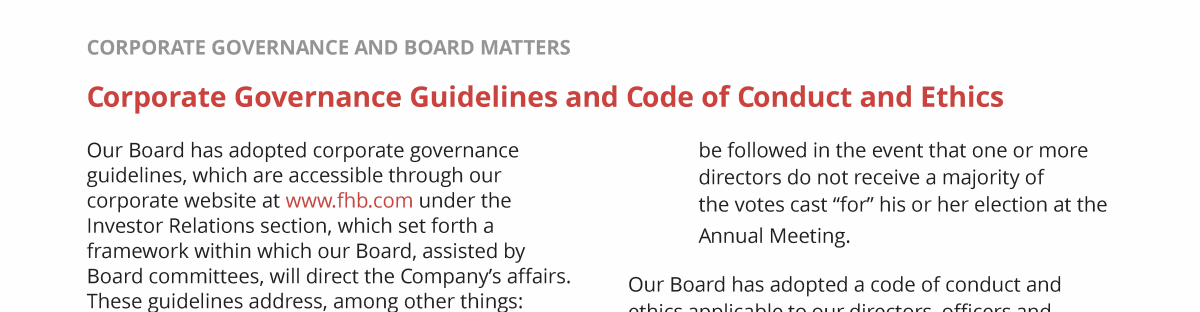 - Corporate Governance Guidelines and Code of Conduct and Ethics