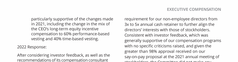 - 2021 Stockholder Outreach