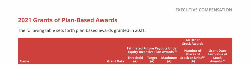 - 2021 Grants of Plan-Based Awards
