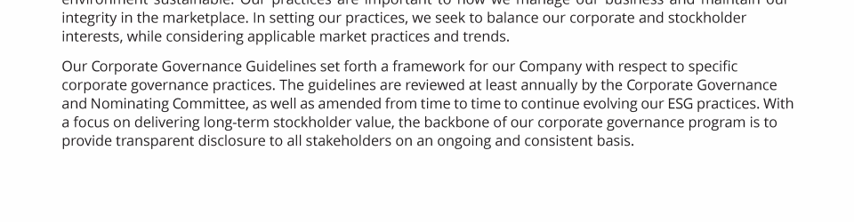 - Corporate Governance Guidelines and Code of Conduct and Ethics