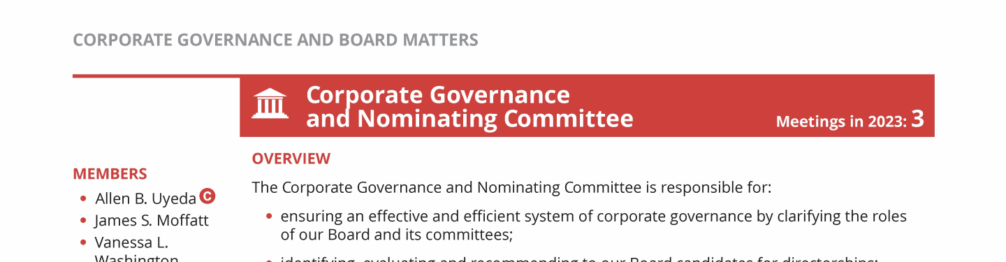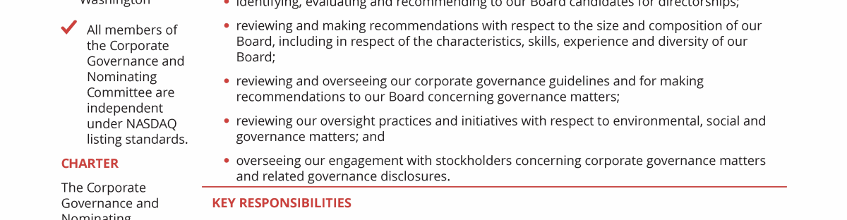 Board of Directors, Committees and Governance