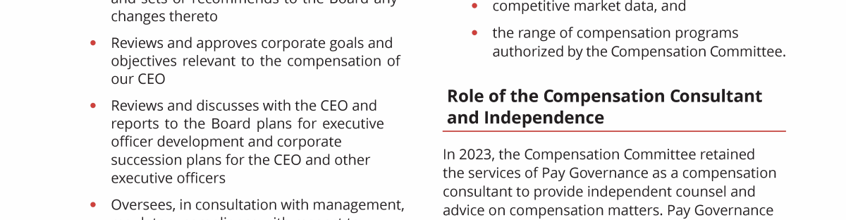 - Compensation Governance Practices