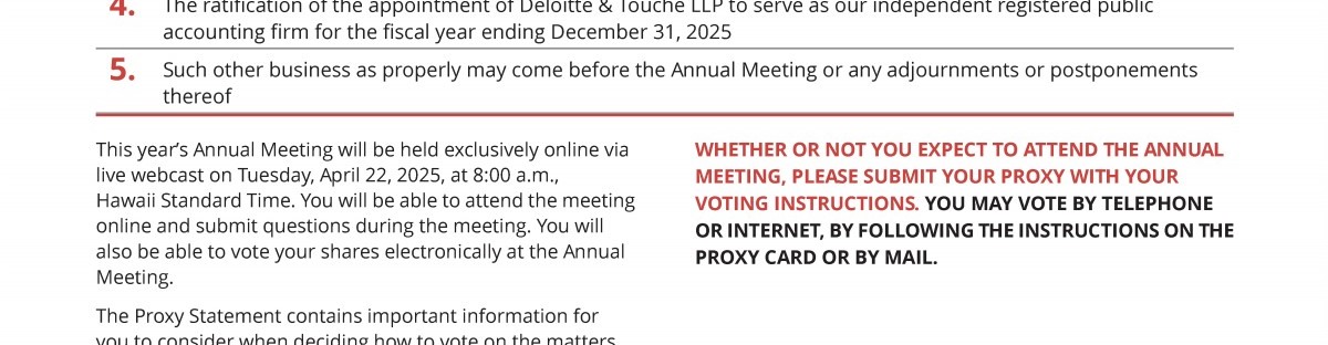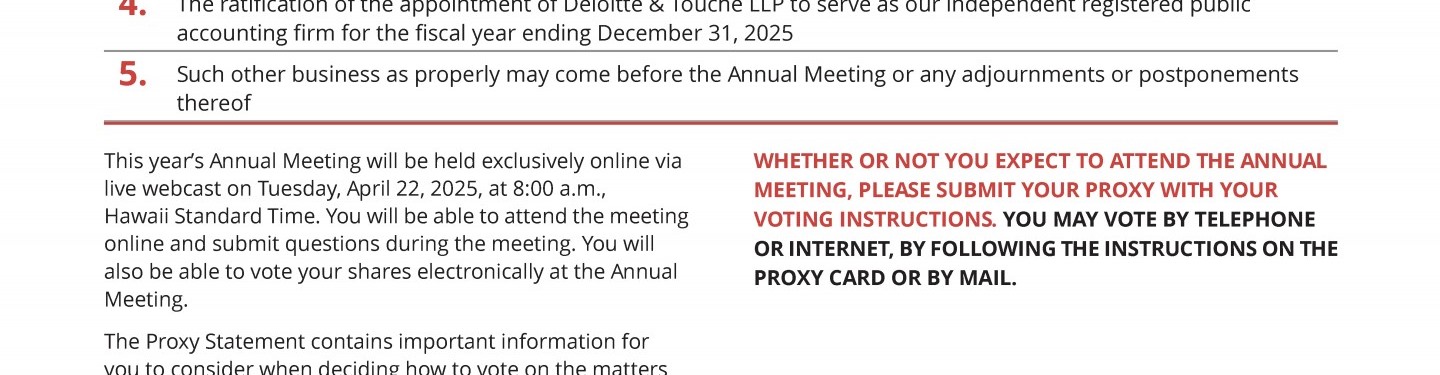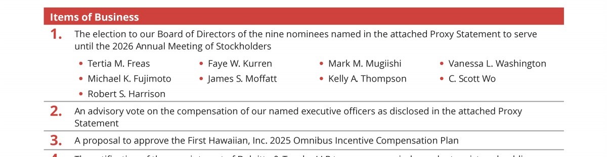 Proposal 3 - Approval of the First Hawaiian, Inc. 2025 Omnibus Incentive Compensation Plan