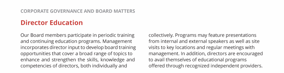 Board of Directors, Committees and Governance