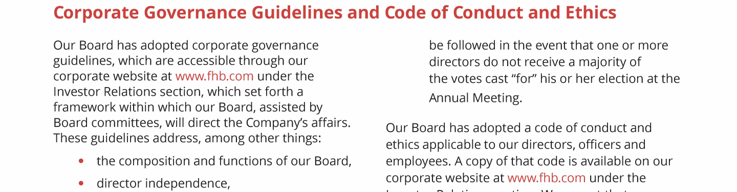 - Corporate Governance Guidelines and Code of Conduct and Ethics
