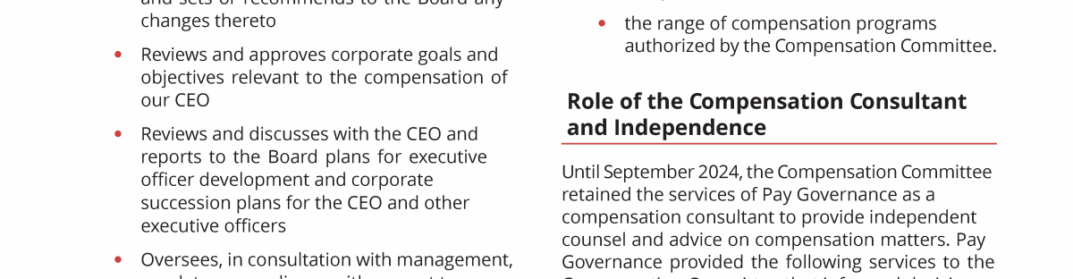 - Compensation Governance Practices