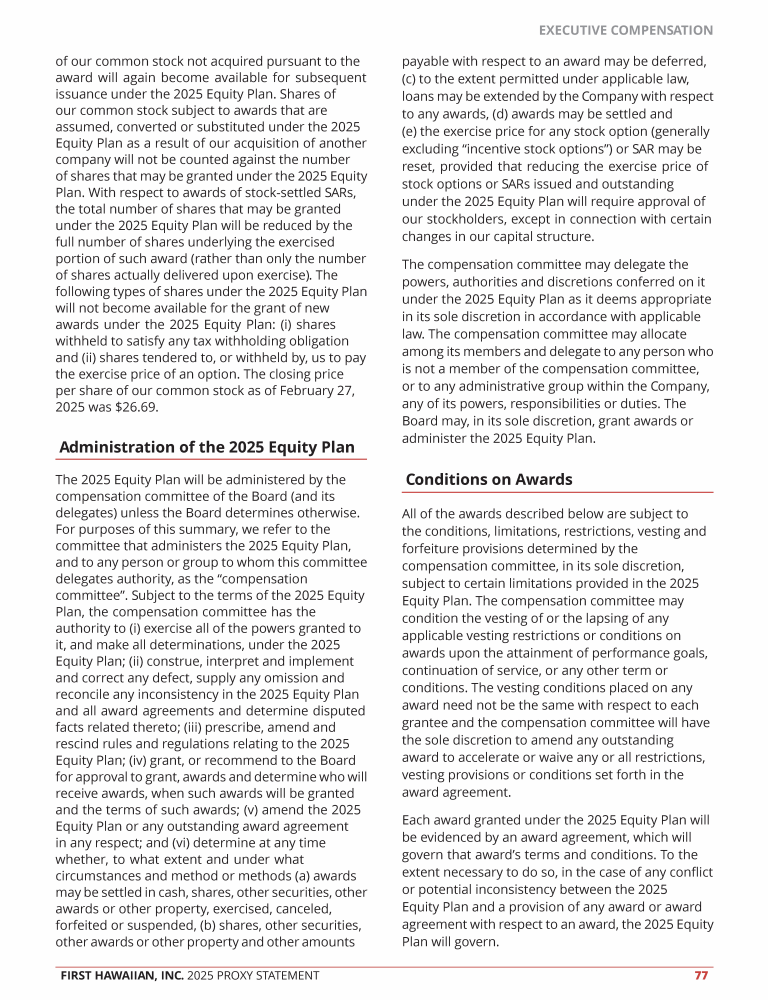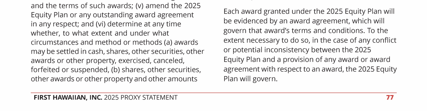 Proposal 3 - Approval of the First Hawaiian, Inc. 2025 Omnibus Incentive Compensation Plan