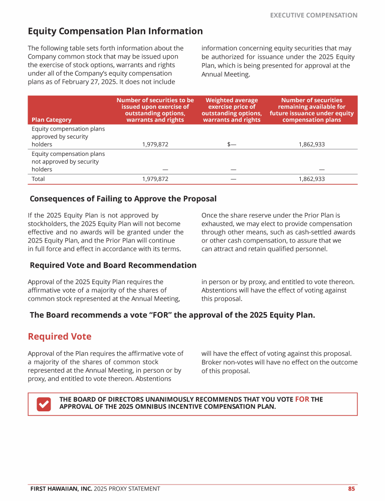 Proposal 3 - Approval of the First Hawaiian, Inc. 2025 Omnibus Incentive Compensation Plan