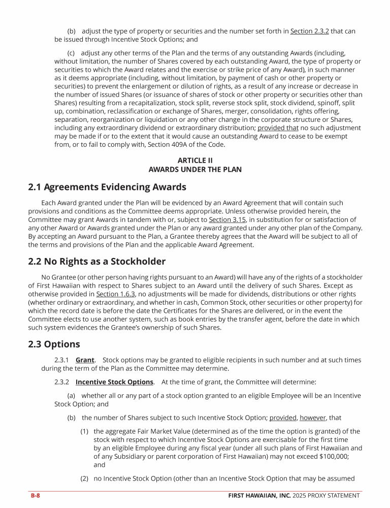Proposal 3 - Approval of the First Hawaiian, Inc. 2025 Omnibus Incentive Compensation Plan