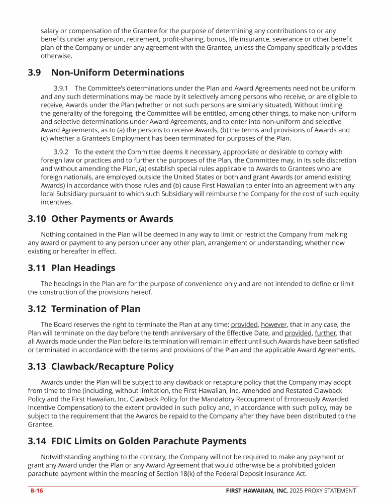 Proposal 3 - Approval of the First Hawaiian, Inc. 2025 Omnibus Incentive Compensation Plan