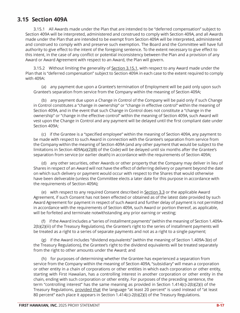 Proposal 3 - Approval of the First Hawaiian, Inc. 2025 Omnibus Incentive Compensation Plan