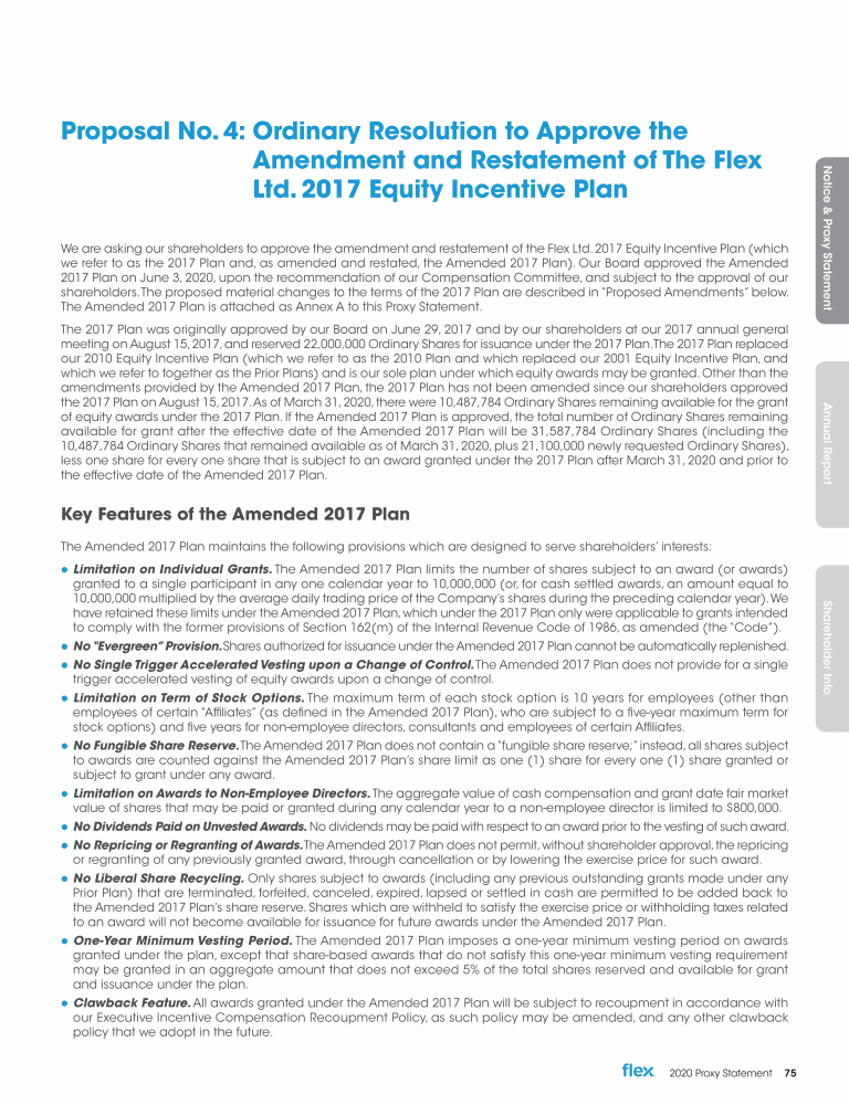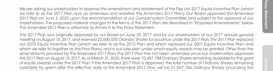 Proposal No. 4: Ordinary Resolution to Approve the Amendment and Restatement of The Flex Ltd. 2017 Equity Incentive Plan