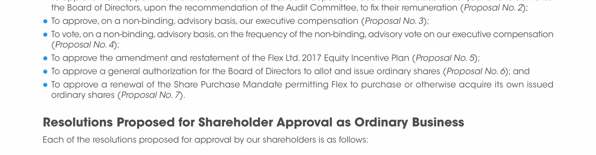 Proposal No. 5: Ordinary Resolution to Approve the Amendment and Restatement of the Flex Ltd. 2017 Equity Incentive Plan