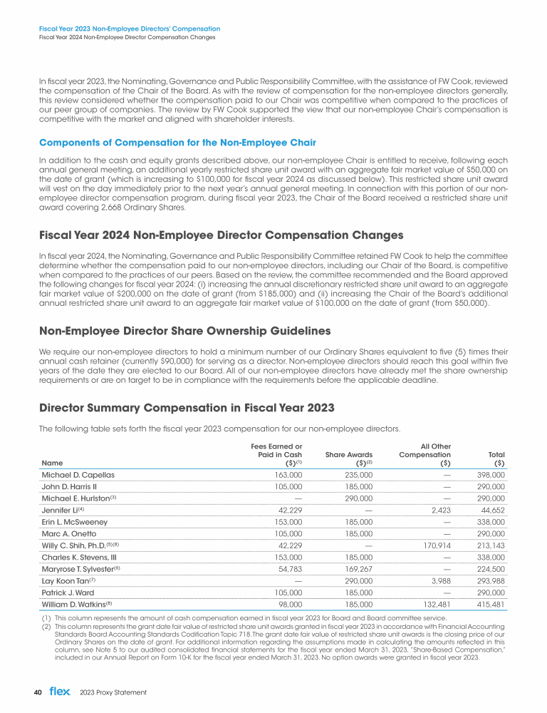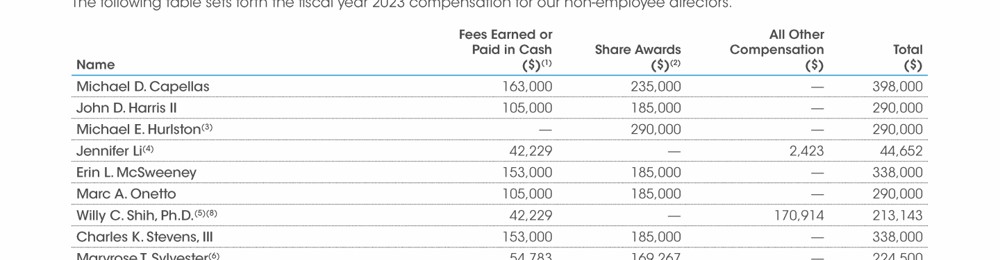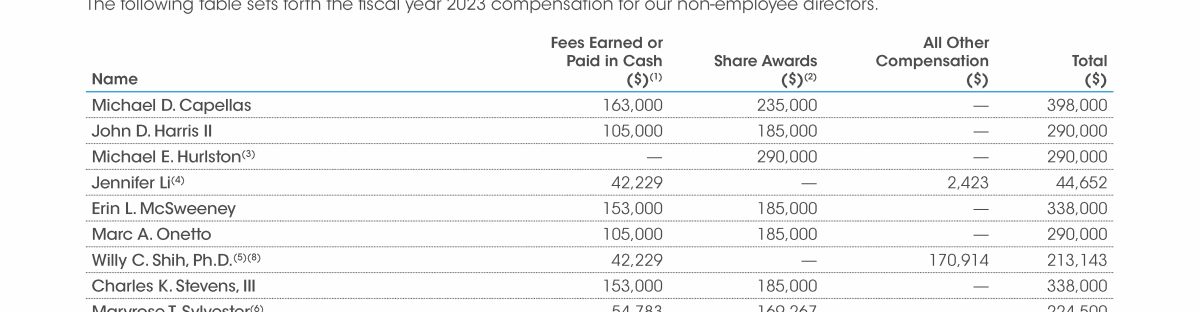 Fiscal Year 2023 Non-Employee Directors' Compensation