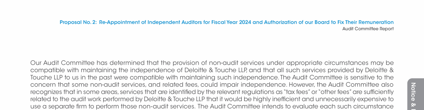 Proposal No. 2: Re-Appointment of Independent Auditors for Fiscal Year 2024 and Authorization of our Board to Fix Their Remuneration