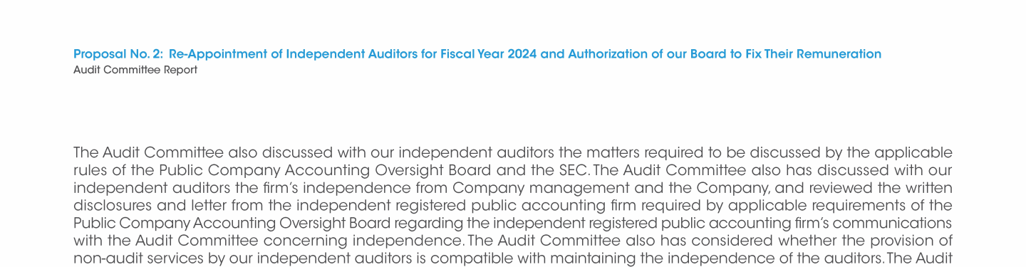 Proposal No. 2: Re-Appointment of Independent Auditors for Fiscal Year 2024 and Authorization of our Board to Fix Their Remuneration