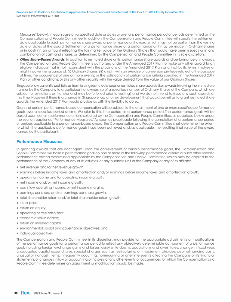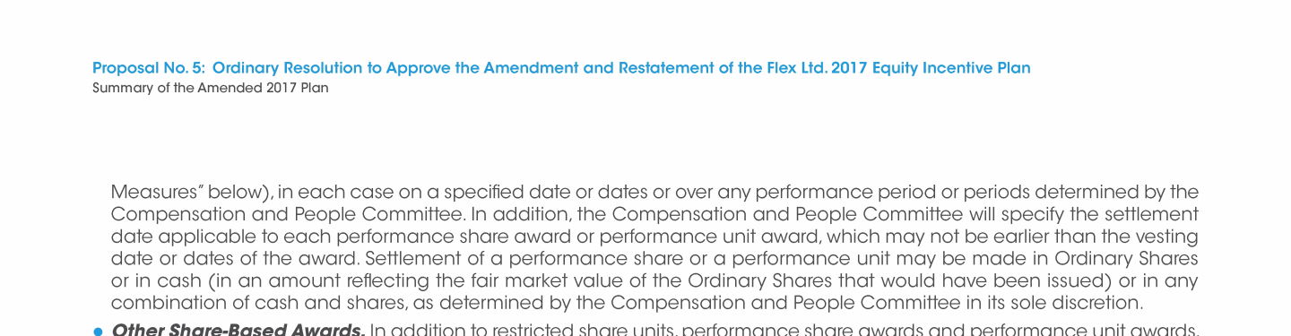 Proposal No. 5: Ordinary Resolution to Approve the Amendment and Restatement of the Flex Ltd. 2017 Equity Incentive Plan