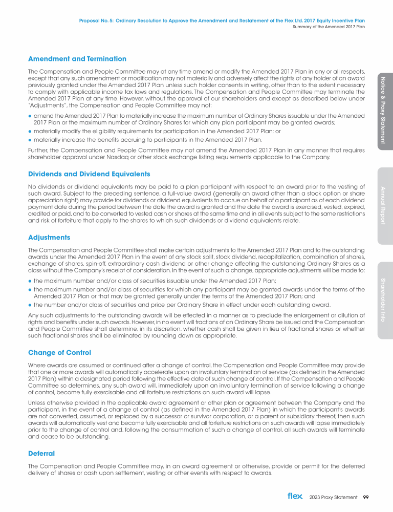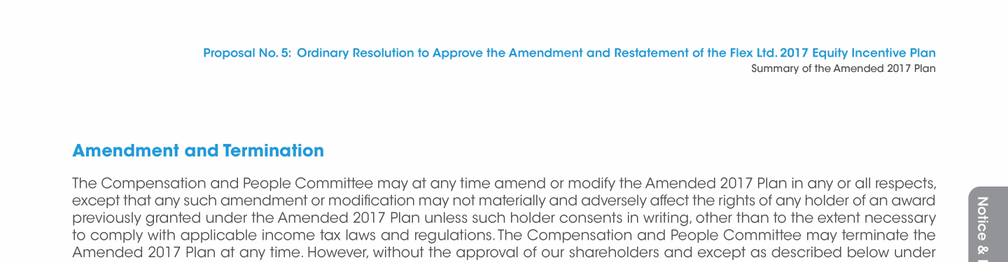 Proposal No. 5: Ordinary Resolution to Approve the Amendment and Restatement of the Flex Ltd. 2017 Equity Incentive Plan