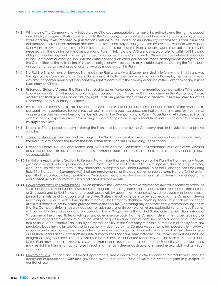 Annex B: Amended and Restated Flex Ltd. 2017 Equity Incentive Plan