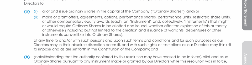 Proposal No. 4: Ordinary Resolution to Authorize Ordinary Share Issuances