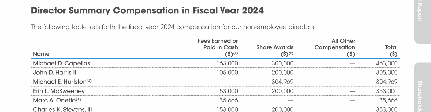 Fiscal Year 2024 Non-Employee Directors' Compensation