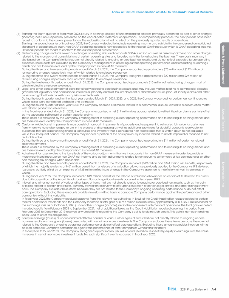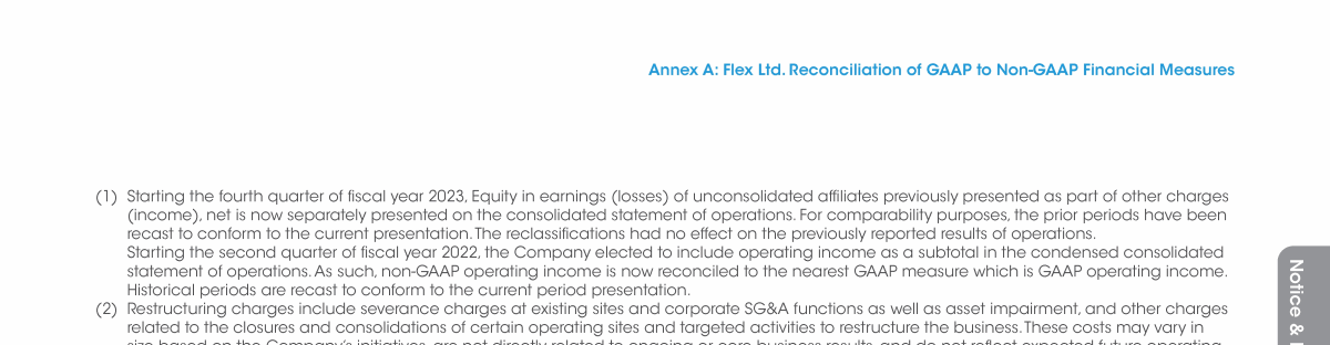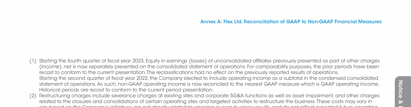 Annex A: Flex Ltd. Reconciliation of GAAP to Non-GAAP Financial Measures