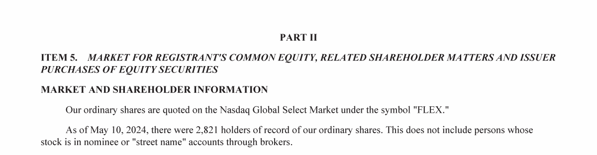 5. Market for Registrant's Common Equity, Related Shareholder Matters and Issuer Purchases of Equity Securities
