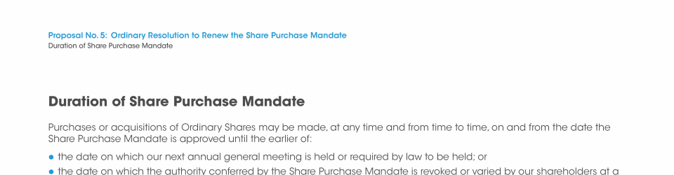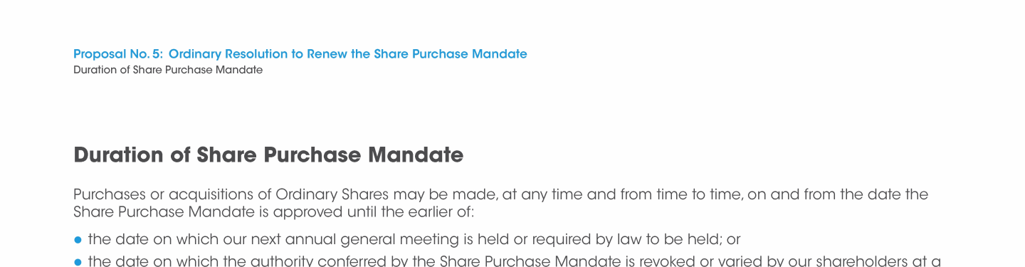 Proposal No. 5: Ordinary Resolution to Renew the Share Purchase Mandate