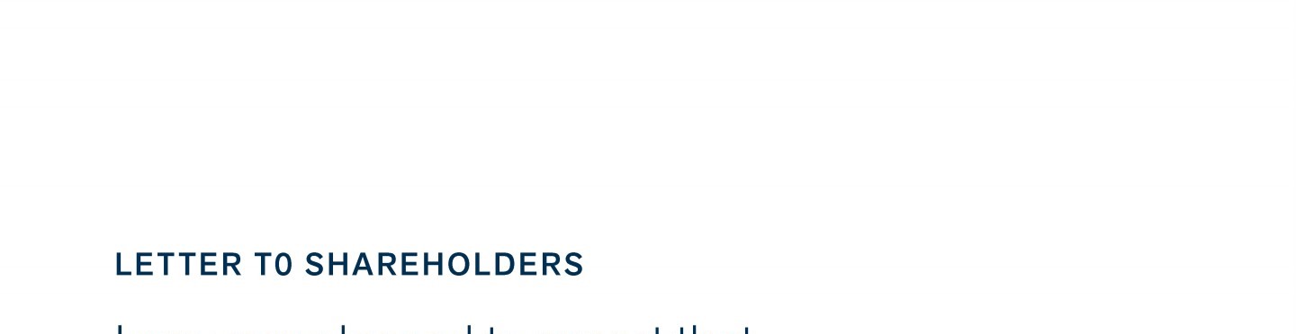 Letter to Shareholders