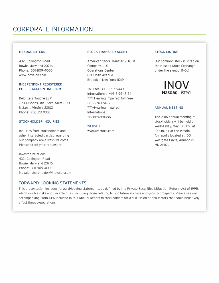 Click here to go to www.inovalon.com Click here to go to www.inovalon.com Click here to go to www.inovalon.com Click here to go to www.amstock.com Click here to go to www.amstock.com Click here to go to www.amstock.com Click here to send a message to inovalonshareholder@inovalon.com Click here to send a message to inovalonshareholder@inovalon.com Click here to send a message to inovalonshareholder@inovalon.com Click here to go to www.inovalon.com Click here to go to www.amstock.com Click here to send a message to inovalonshareholder@inovalon.com Click here to go to www.inovalon.com Click here to go to www.amstock.com Click here to send a message to inovalonshareholder@inovalon.com