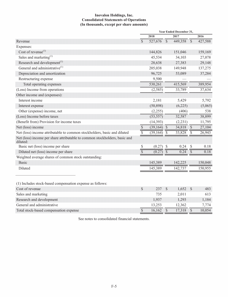 - Consolidated Statements of Operations