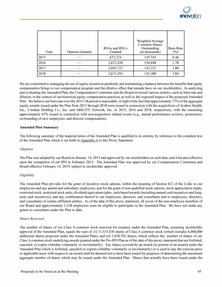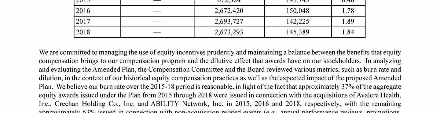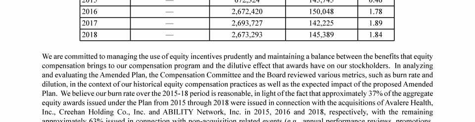 - Equity Compensation Plan Information as of December 31, 2018