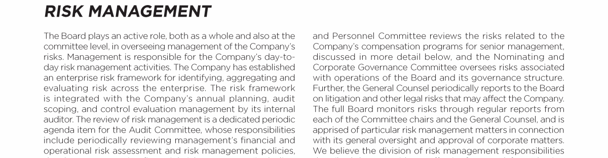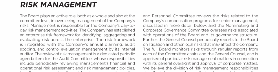 - Board's Oversight of Enterprise Risk and Risk Management