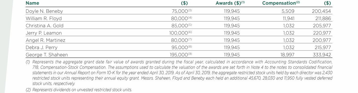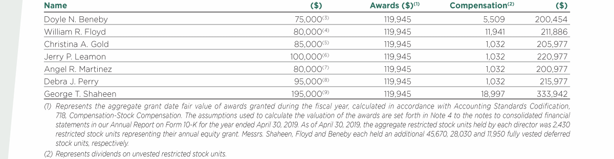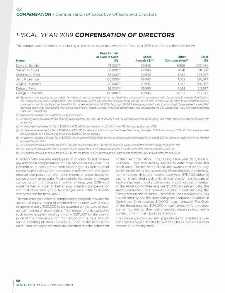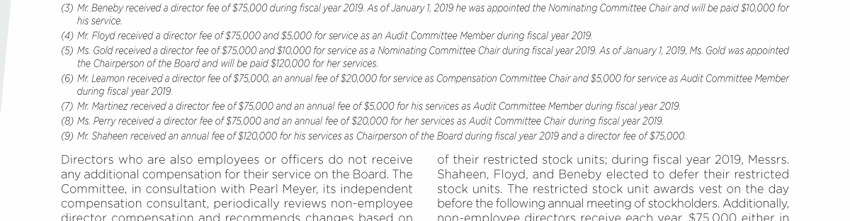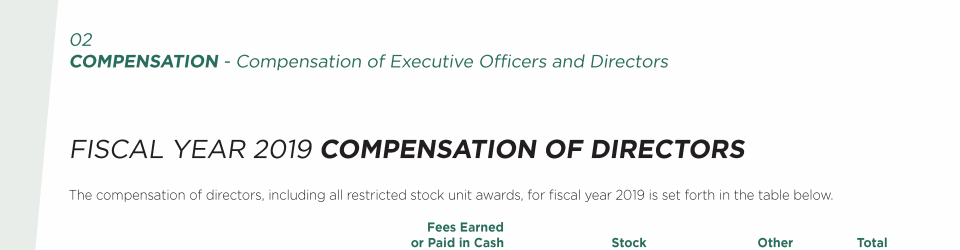- Fiscal Year 2019 Compensation of Directors