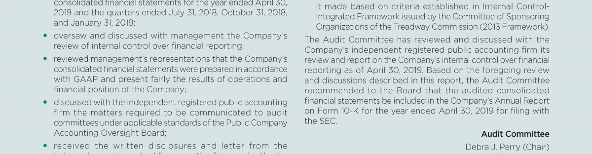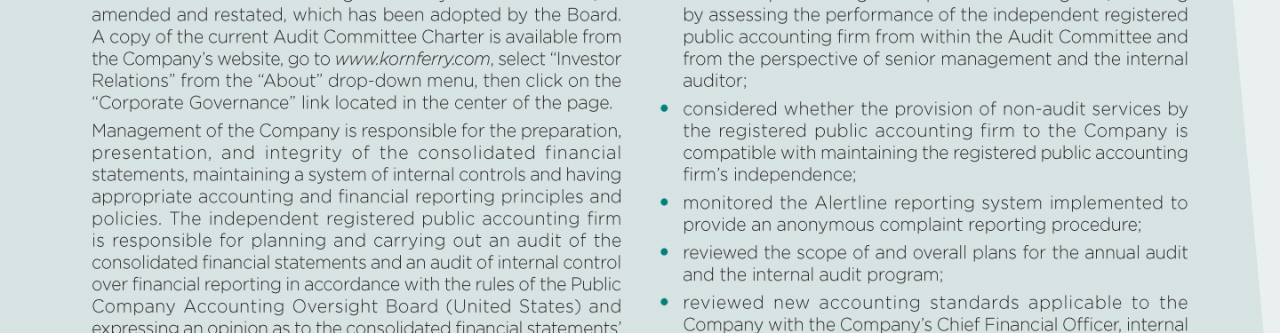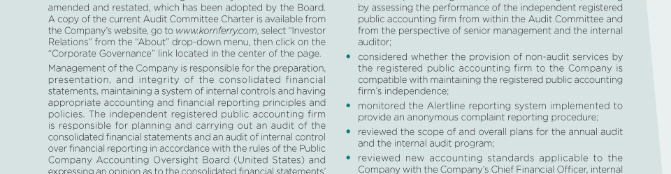 Audit Committee Matters