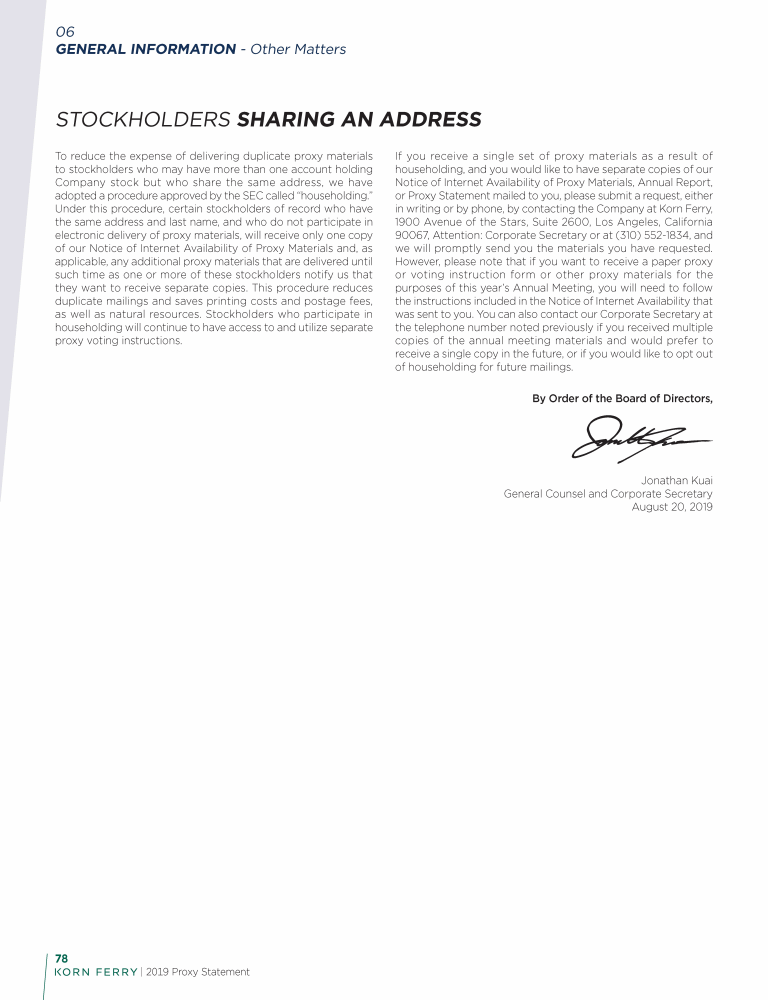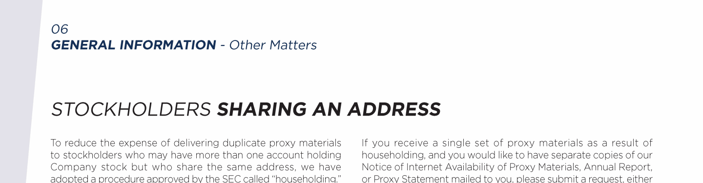 - Submission of Stockholder Proposals for Consideration at the 2020 Annual Meeting