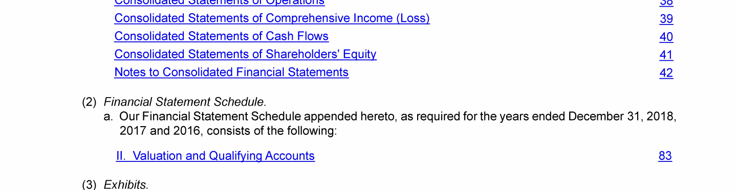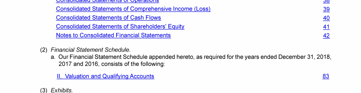 Click to view Consolidated Balance Sheets Click to view Consolidated Statements of Operations Click to view Consolidated Balance Sheets Click to view Consolidated Statements of Operations Click to view Consolidated Balance Sheets Click to view Consolidated Statements of Operations Click to view Consolidated Statements of Operations Click to view Consolidated Statements of Comprehensive Income (Loss) Click to view Consolidated Statements of Cash Flows Click to view Consolidated Statements of Shareholders' Equity Click to view Notes to Consolidated Financial Statements Click to view Schedule II - Valuation and Qualifying Accounts Click to view Consolidated Statements of Operations Click to view Consolidated Statements of Comprehensive Income (Loss) Click to view Consolidated Statements of Cash Flows Click to view Consolidated Statements of Shareholders' Equity Click to view Notes to Consolidated Financial Statements Click to view Schedule II - Valuation and Qualifying Accounts Click to view Consolidated Statements of Operations Click to view Consolidated Statements of Comprehensive Income (Loss) Click to view Consolidated Statements of Cash Flows Click to view Consolidated Statements of Shareholders' Equity Click to view Notes to Consolidated Financial Statements Click to view Schedule II - Valuation and Qualifying Accounts Click to view Consolidated Balance Sheets Click to view Consolidated Statements of Operations Click to view Consolidated Statements of Operations Click to view Consolidated Statements of Comprehensive Income (Loss) Click to view Consolidated Statements of Cash Flows Click to view Consolidated Statements of Shareholders' Equity Click to view Notes to Consolidated Financial Statements Click to view Schedule II - Valuation and Qualifying Accounts Click to view Consolidated Balance Sheets Click to view Consolidated Statements of Operations Click to view Consolidated Statements of Operations Click to view Consolidated Statements of Comprehensive Income (Loss) Click to view Consolidated Statements of Cash Flows Click to view Consolidated Statements of Shareholders' Equity Click to view Notes to Consolidated Financial Statements Click to view Schedule II - Valuation and Qualifying Accounts