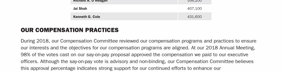 Compensation Decisions in 2018