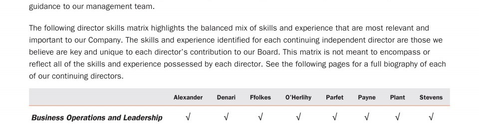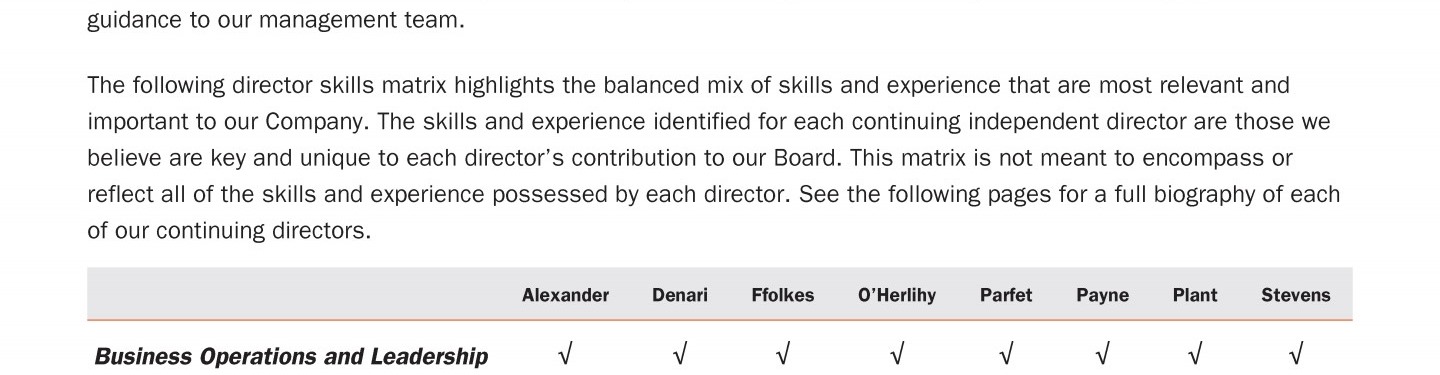 Review our members' biographies, skills/qualifications, committees, and more in our interactive