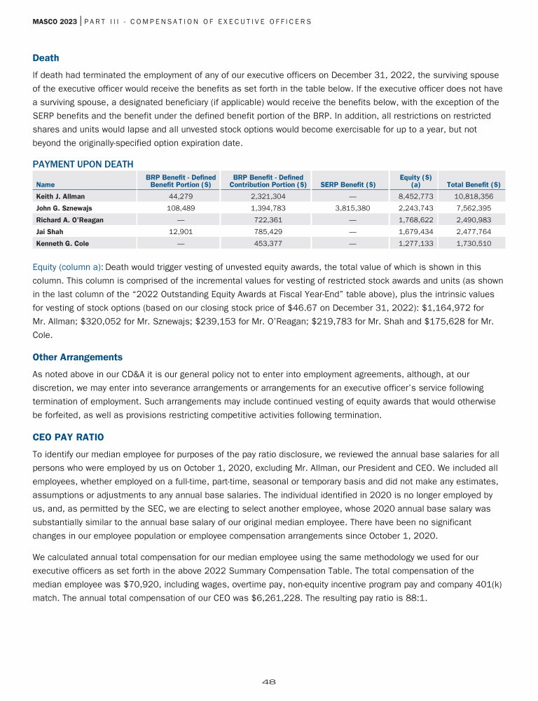 Payment Upon Retirement, Termination, Disability or Death