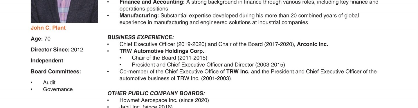 Review our director nominees' biographies, skills/qualifications, committees, and more in our interactive