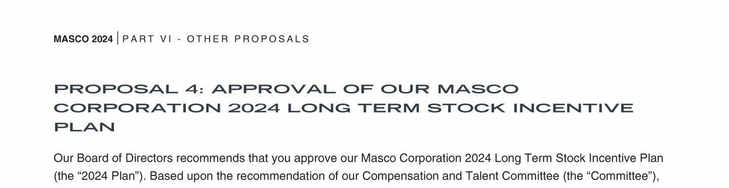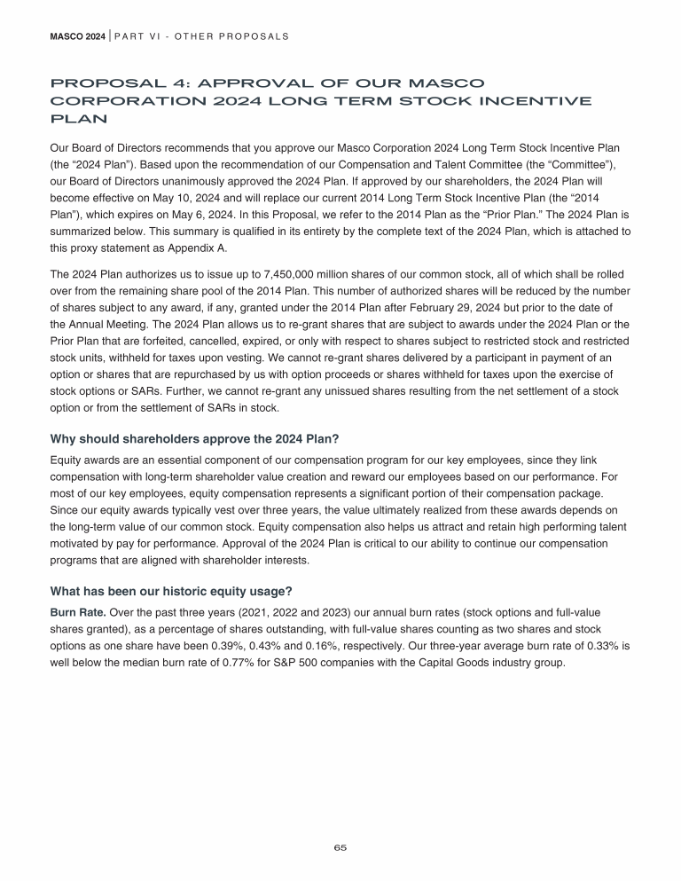 Proposal 4: Approval of Our Masco Corporation 2024 Long Term Stock Incentive Plan