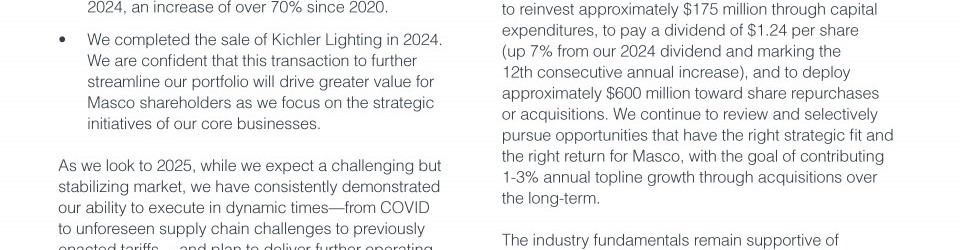 At Masco, We Believe in Delivering Better Living Possibilities.