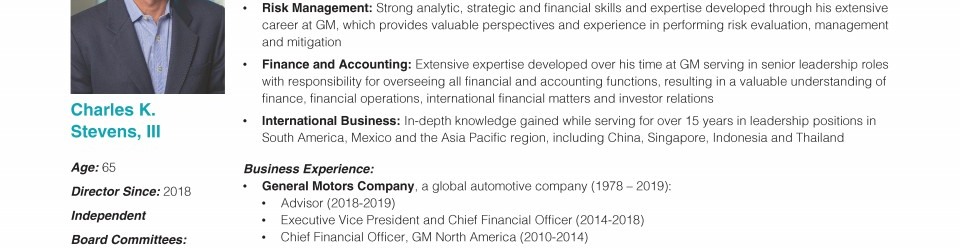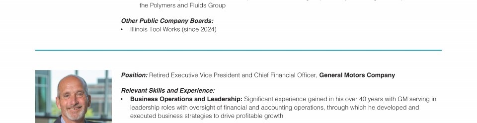 Review our director nominees' biographies, skills/qualifications, committees, and more in our interactive