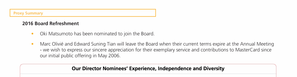 Proposal 2: Advisory Approval of MasterCard's Executive Compensation