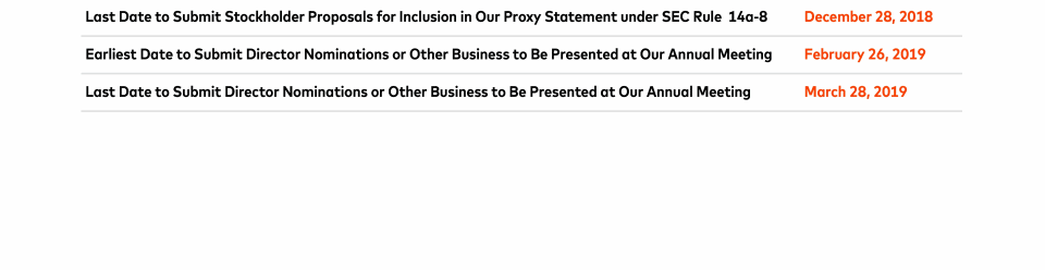 Important Information and Dates Related to the 2019 Annual Meeting