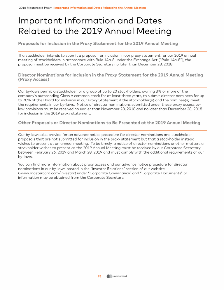 Important Information and Dates Related to the 2019 Annual Meeting