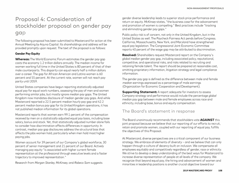 Proposal 4: Consideration of Stockholder Proposal on Gender Pay Gap