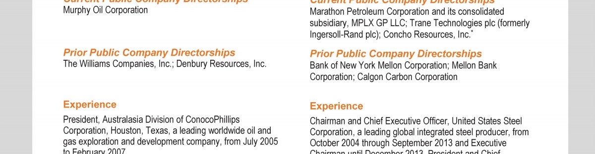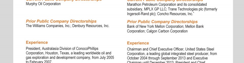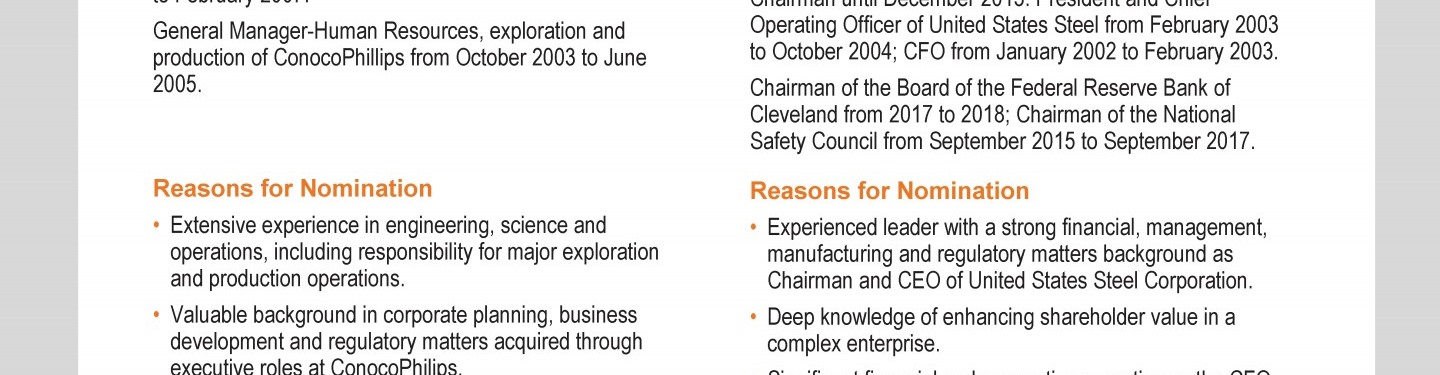 Review our director nominees' biographies, skills/qualifications, committees, and more in our interactive